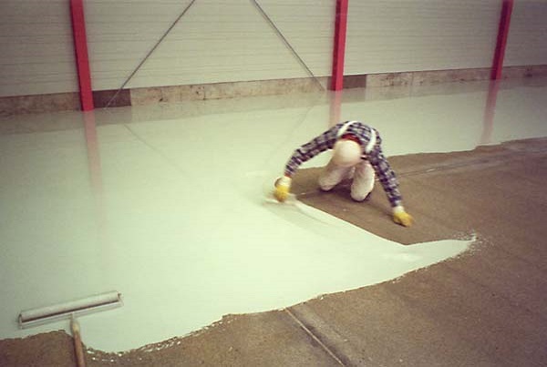 - 4 Komp. Epoxidharz - Beschichtung, dampfdiffusionsoffen auf einem 14 Tage alten, frisch verlegten Beton.